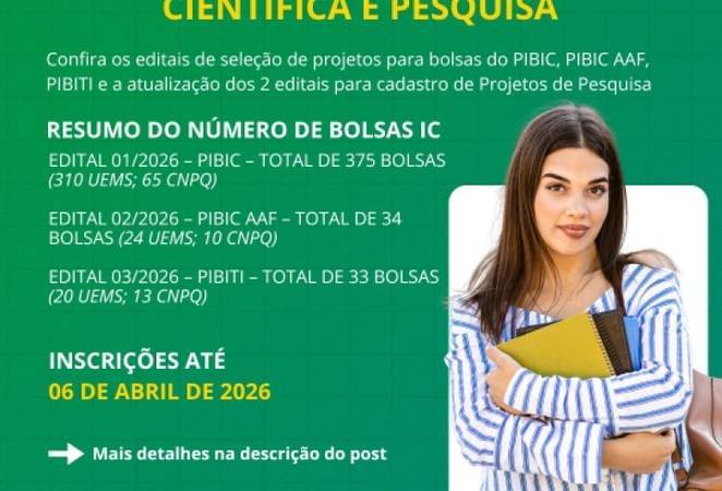 Abertos novos editais para 442 bolsas de Iniciação Científica